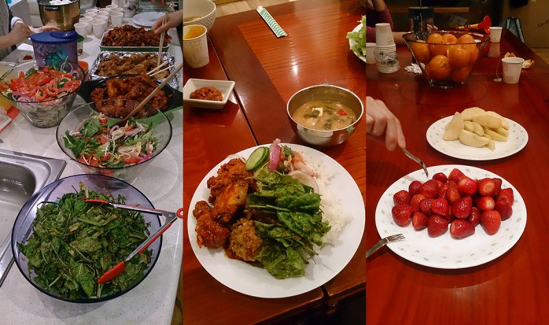 음식들은 사진보다 훨씬 비주얼과 맛이 좋았습니다. 각 가정마다 준비한 음식으로 부페 음식점에 온것 같은 풍성한 식탁이 완성됐습니다. 금요일 저녁은 항상 배부르다는...