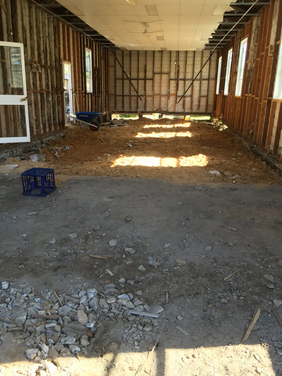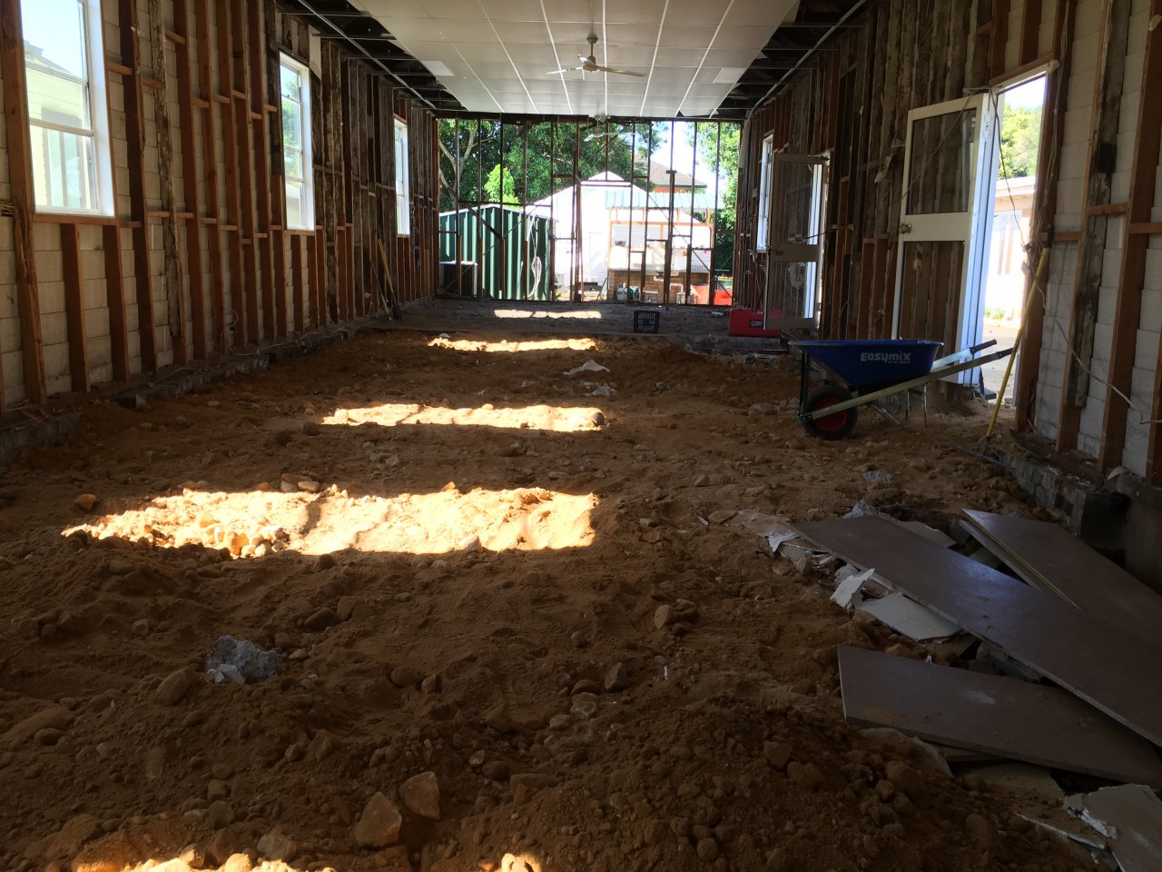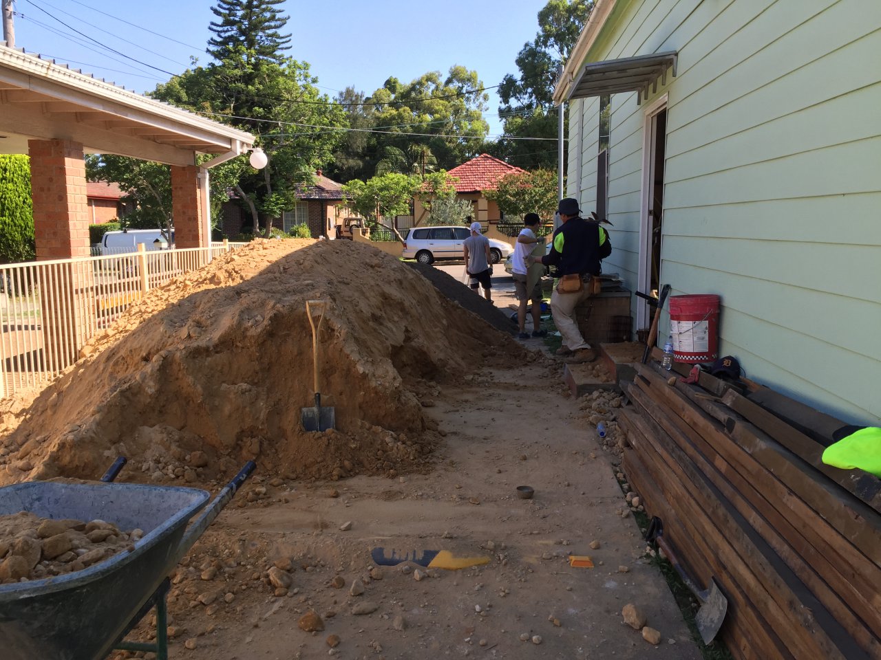바닥을 고르고 모래와 자갈을 사다가 바닥 고르기를 하고 있습니다.