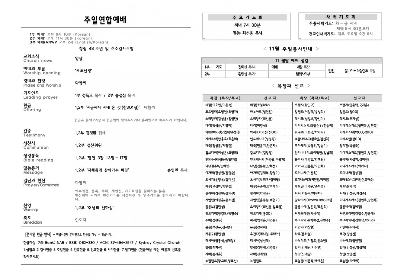 3. 오늘은 추수감사주일과 교회 창립 48주년 감사주일 예배로 드려집니