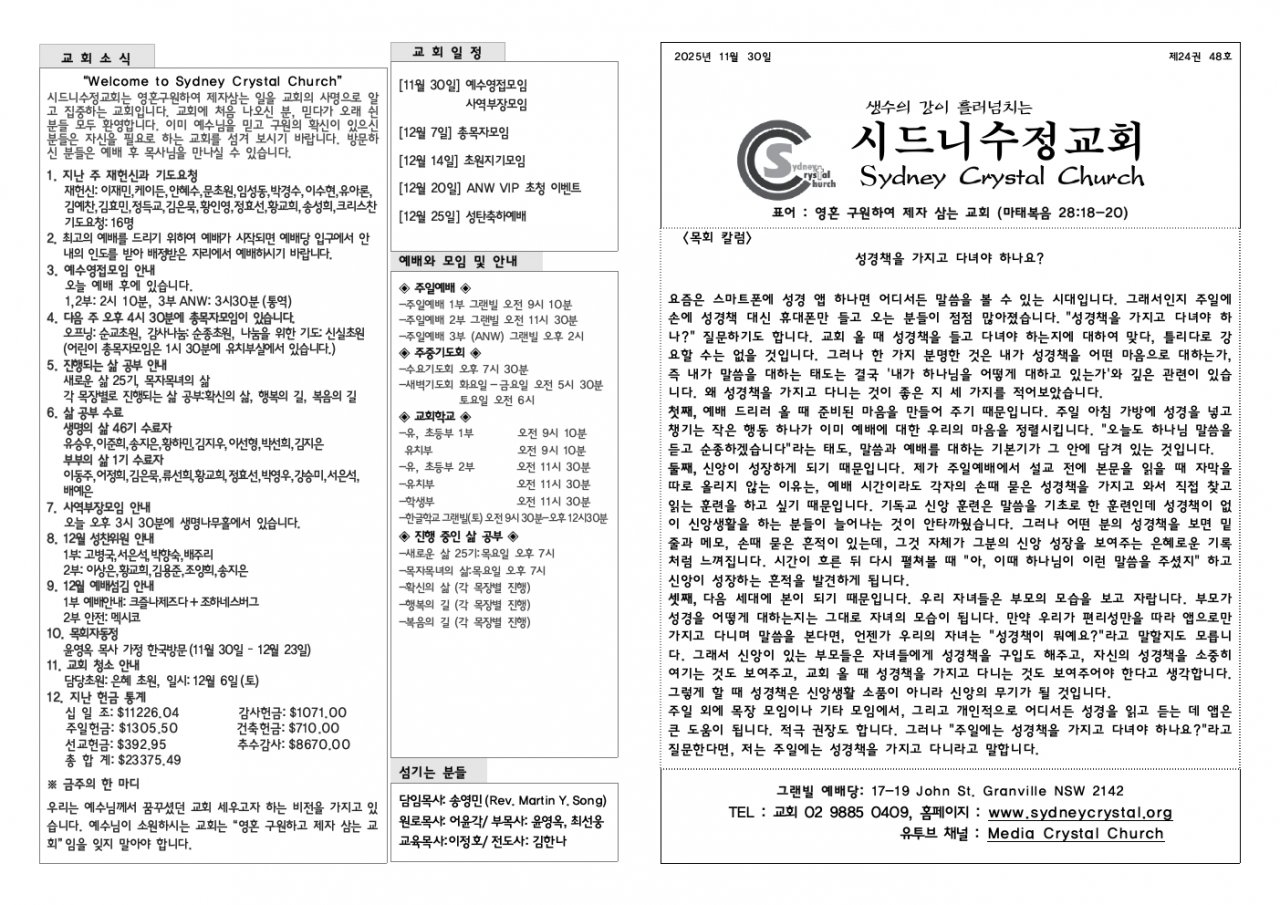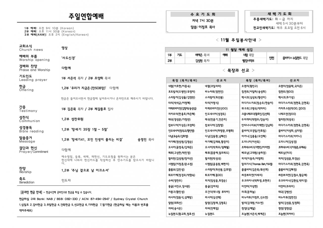 (어린이 총목자모임은 1시 30분에 유치부실에서 있습니다.)