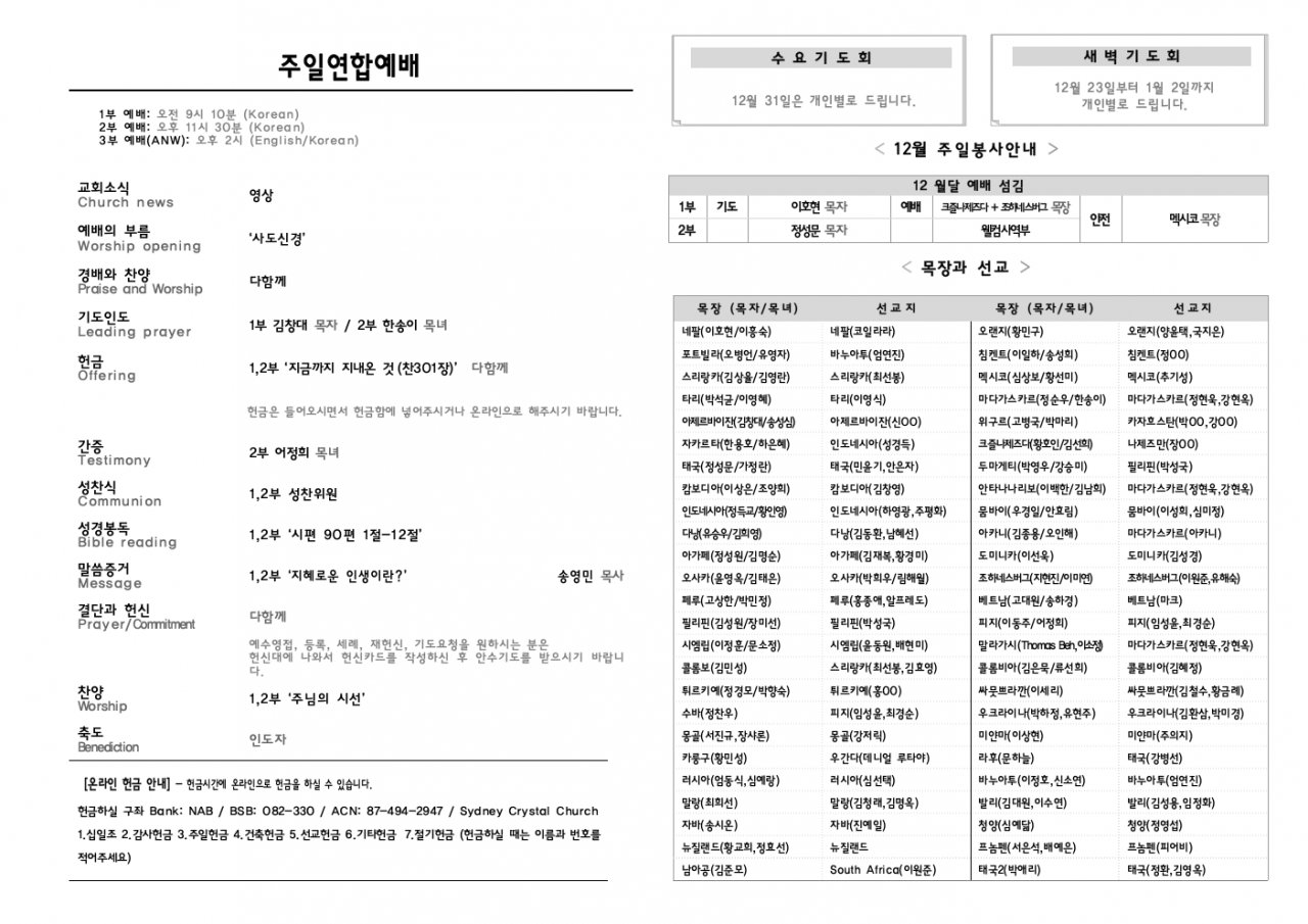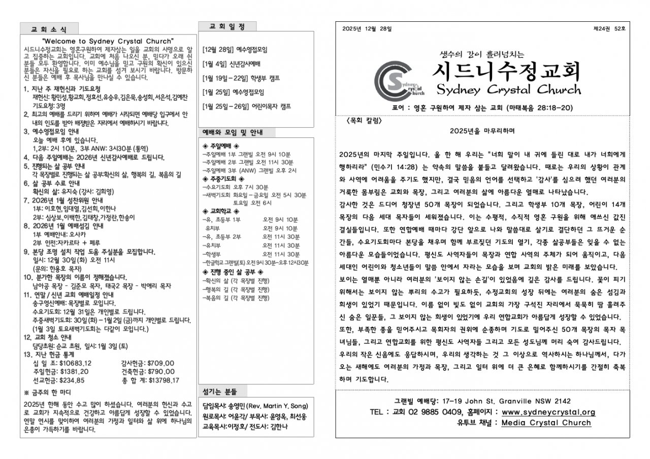 4. 다음 주일예배는 2026년 신년감사예배로 드립니다.