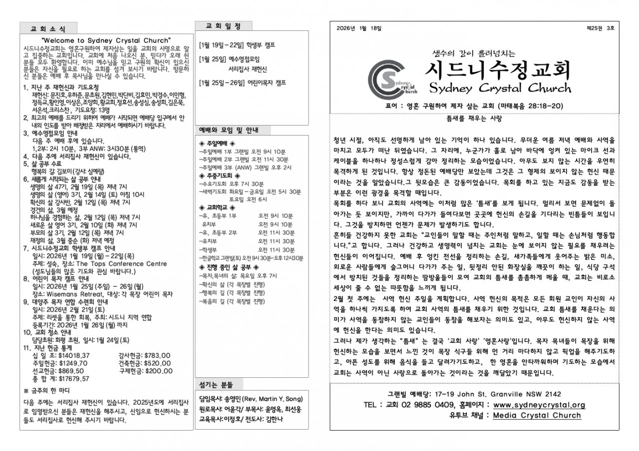 (성도님들의 많은 기도와 관심 바랍니다.)