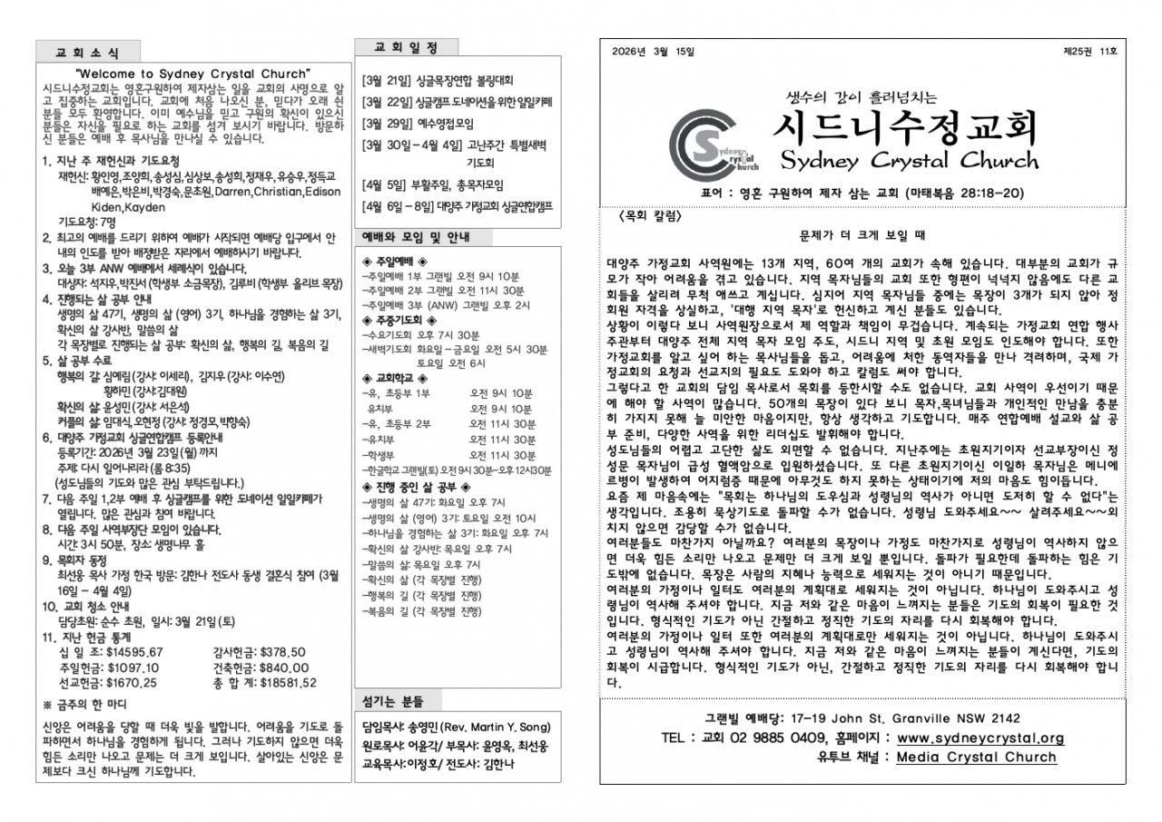 (성도님들의 기도와 많은 관심 부탁드립니다.)